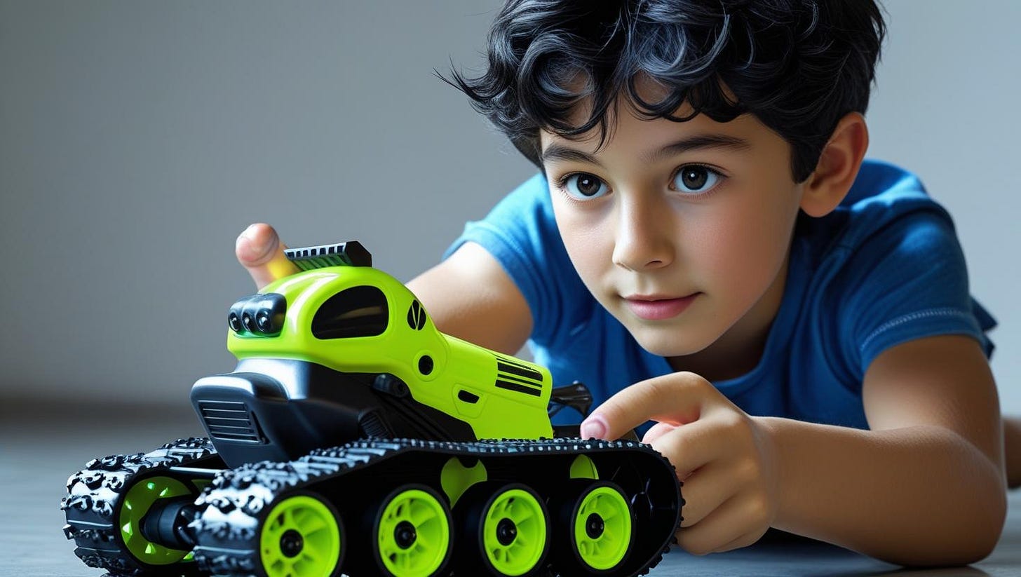 Within a week he had been to Max-Mart with a bagful of gifts and matching receipts. He returned with a neon green and black TrackTreads 360 X remote control vehicle – ‘flips on caterpillar tracks and climbs over any obstacle in its path!’